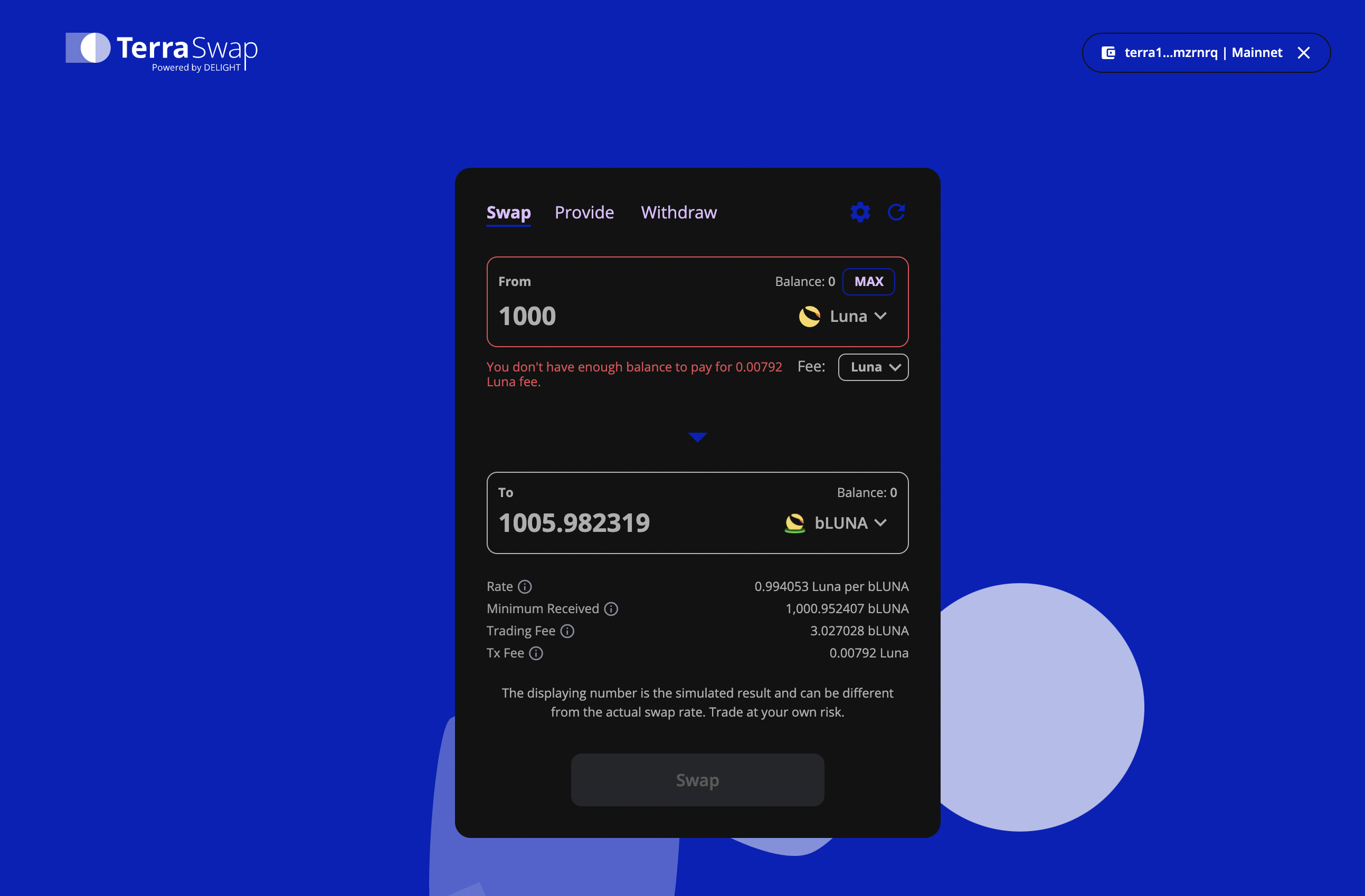 루나를 사다가 테라 스왑에서 bLUNA로 스왑 할 수 있다