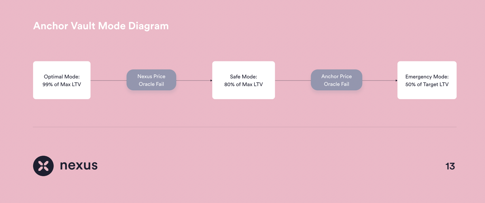 앵커 오라클이 실패하는 경우, 넥서스 프로토콜은 리스크 관리 모델을 자동으로 긴급 모드로 전환한다.