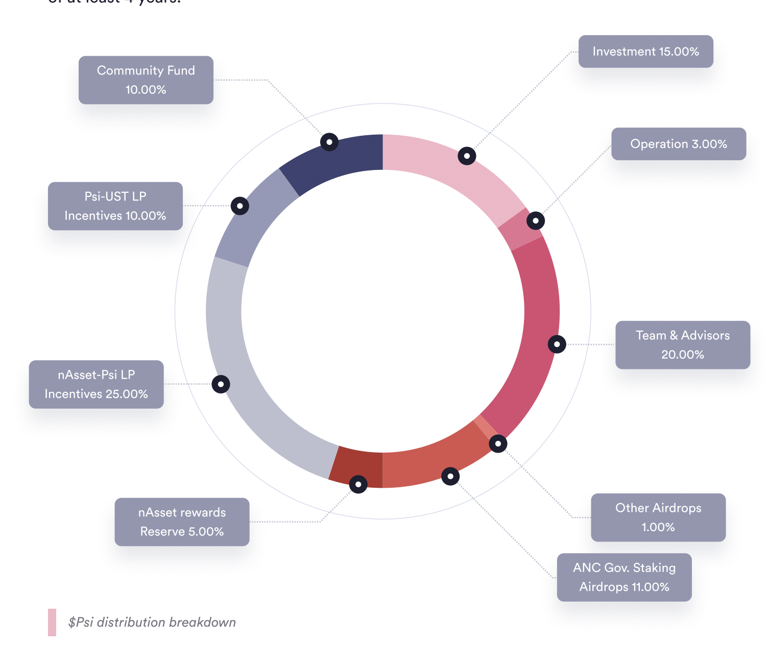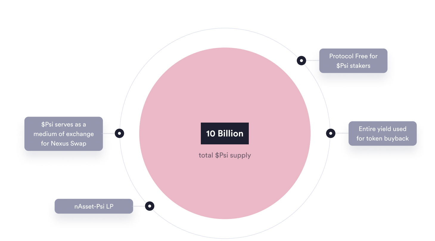 Psi 토큰은 넥서스 프로토콜은 거버넌스 토큰. Psi 토큰 홀더는 넥서스 프로토콜에서 발생하는 수수료를 받을 수 있으며 거버넌스 스테이 킹과 넥서스 거버넌스에 참여할 수 있는 권리를 가짐