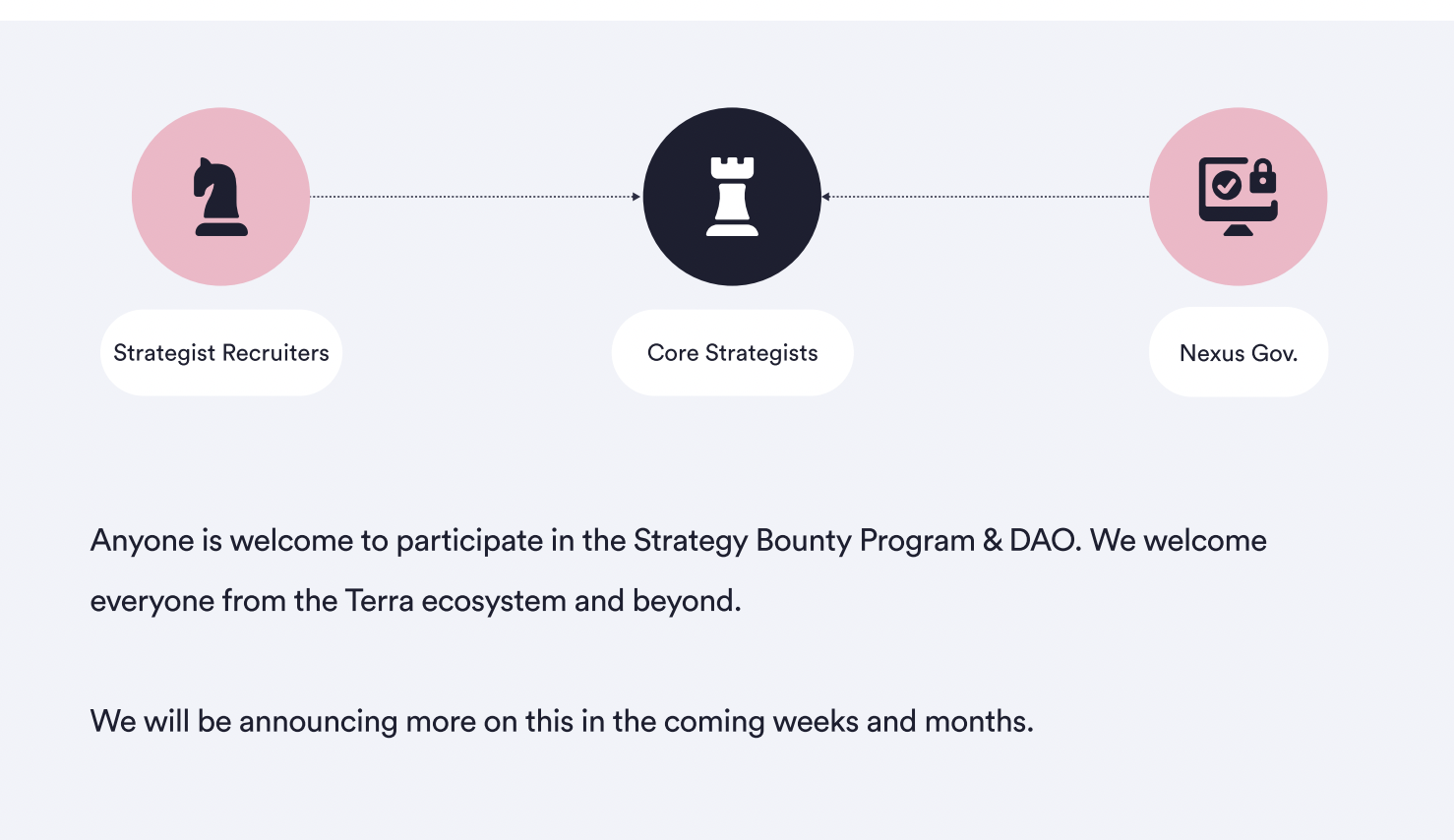 테라 디파이를 활용한 최적의 전략을 공유하는 사람에게 인센티브로 리워드 시스템을 제공할 것 (코멘트: Spar처럼 디파이 헷지 펀드를 유치하기 위함인 듯)