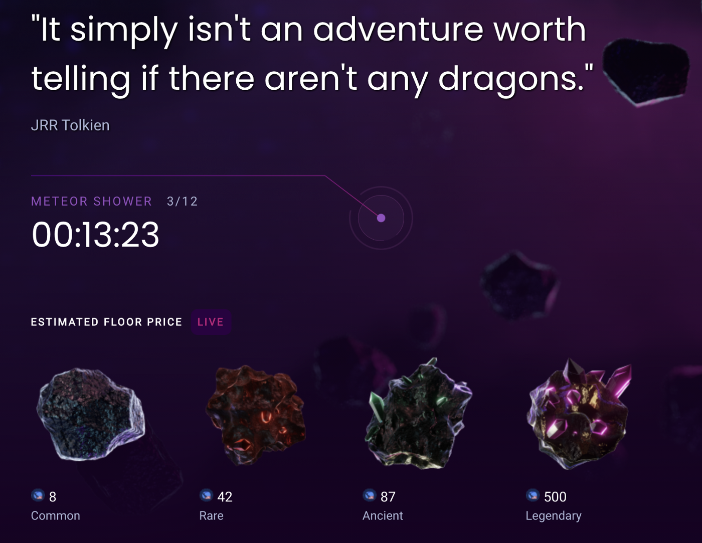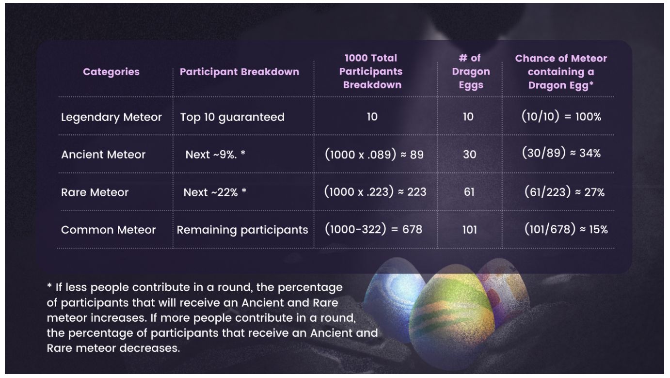 테스트넷 웹앱에서는 아래처럼 드래곤 에그 등급별 추정 바닥 가격 (얼마 기부해야 하는지) 나왔는데 메인넷에서도 보여줄지는 모르겠음