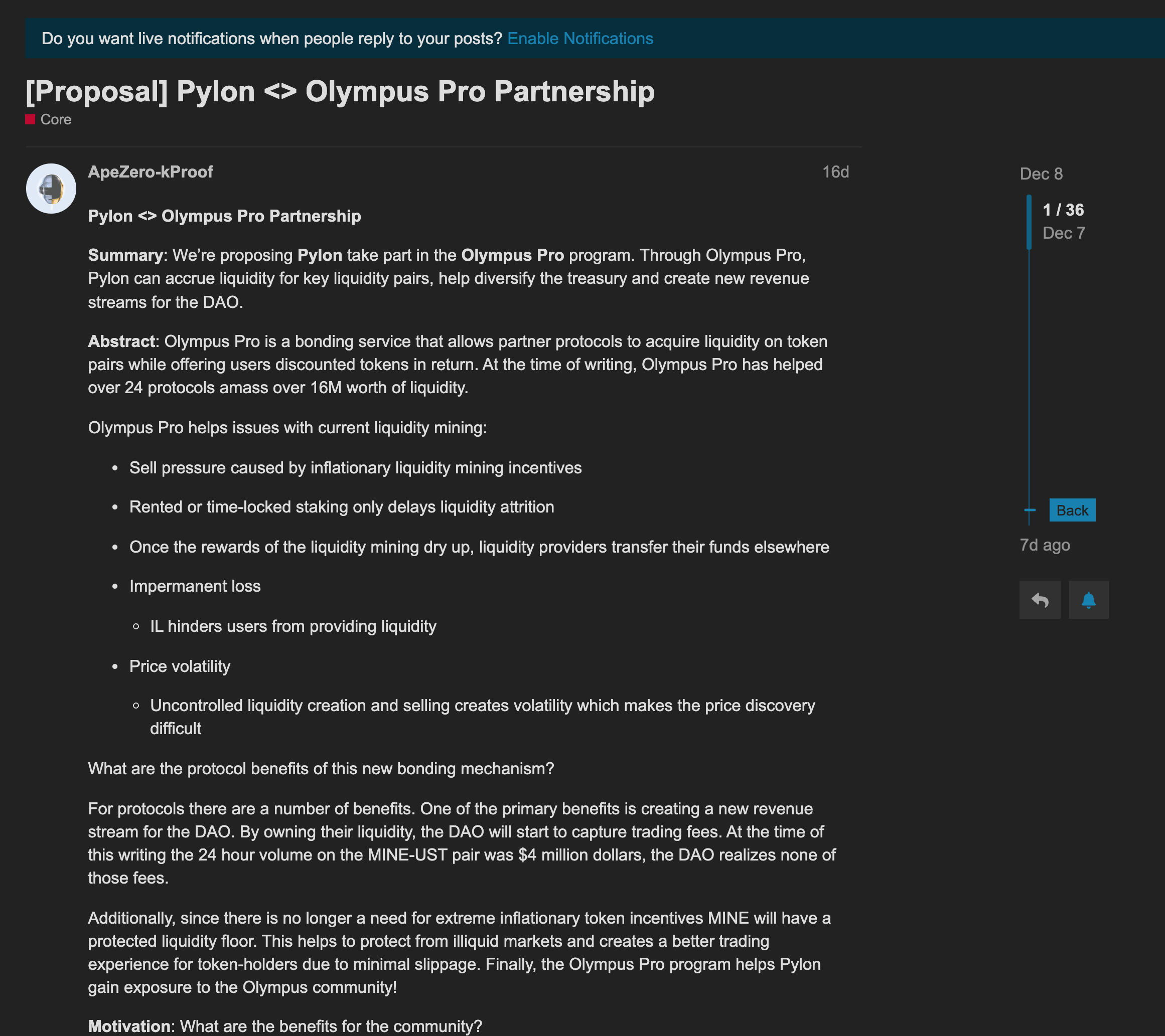 올림푸스 프로 프로포절 통과되어서 이제 파일론 프로토콜이 직접 유동성 공급할게 될 거고
