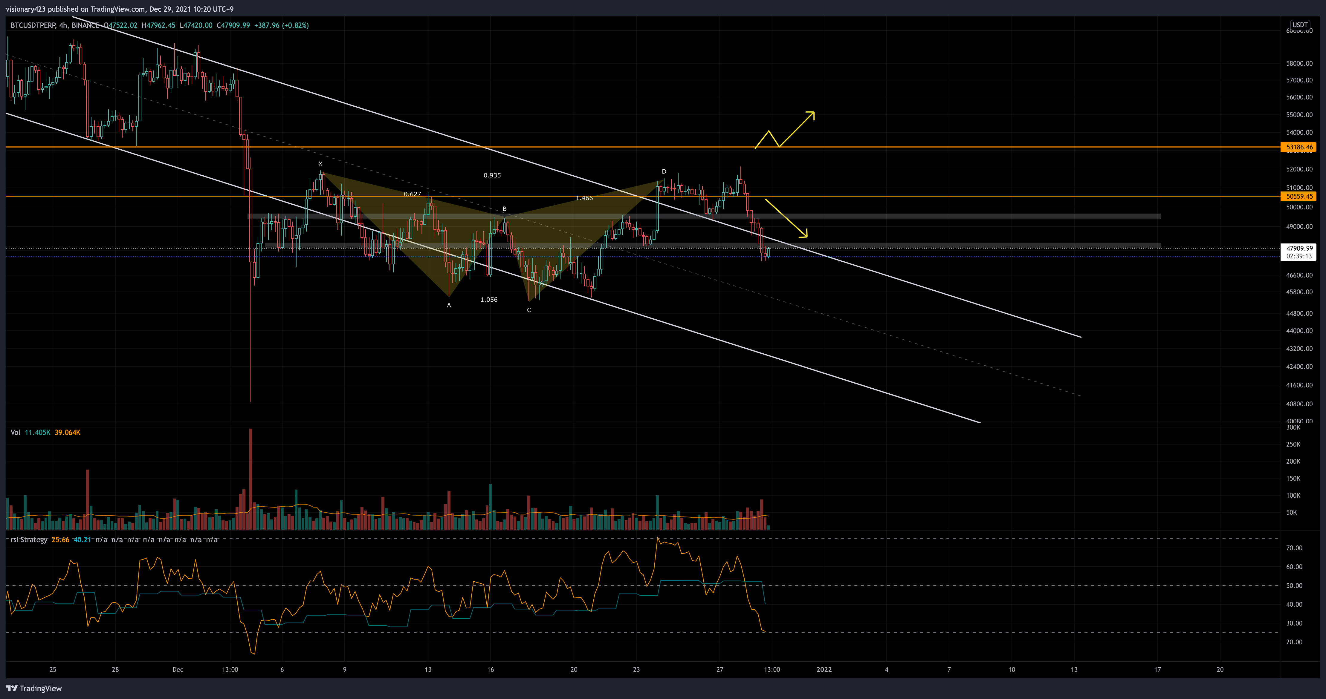 하락 채널로 다시 들어와서 모양이 좋지 않지만