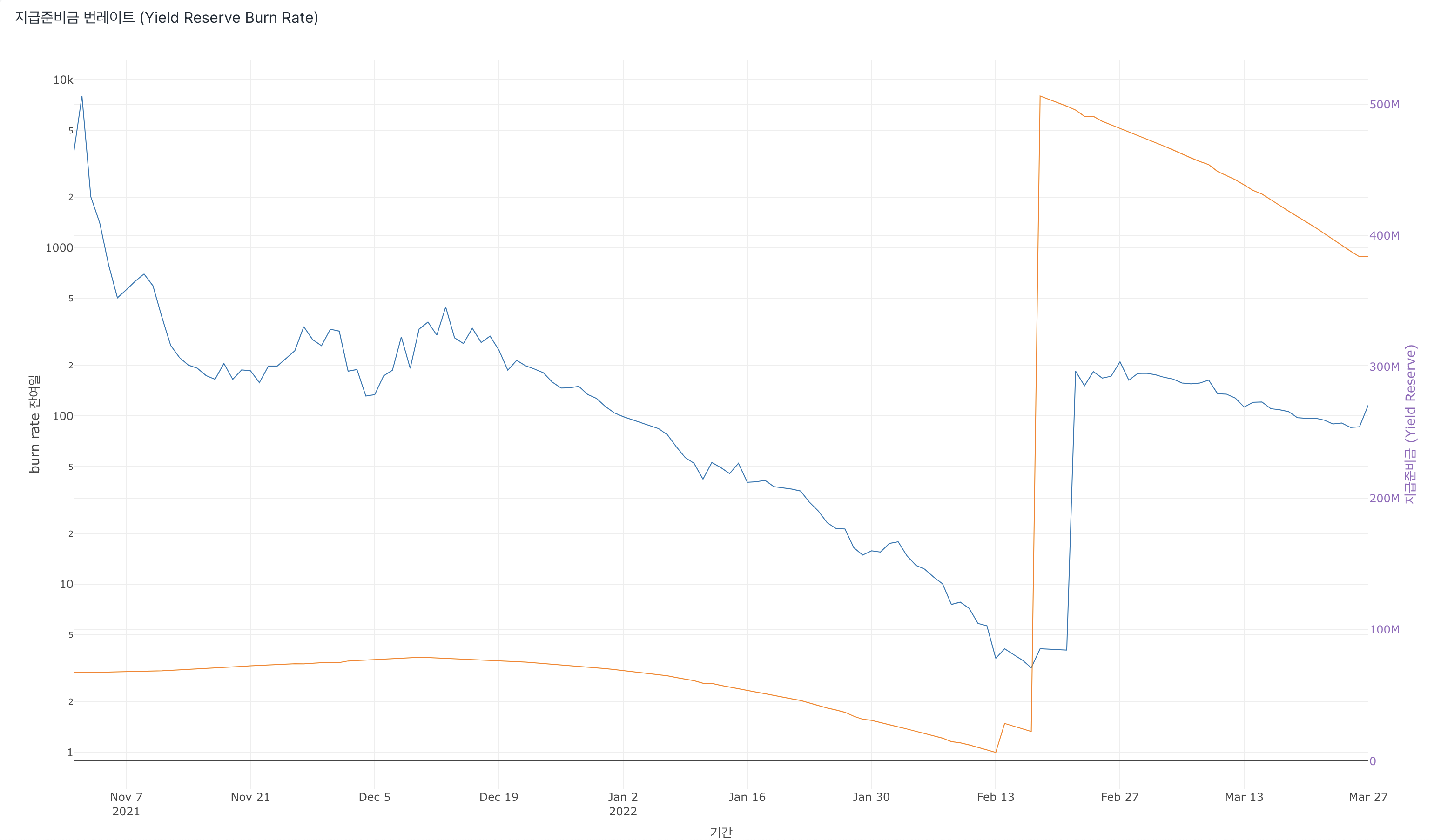 - 지급준비금 (Yield Reserve) 예상 잔여일 (burn rate) 116일 남음.