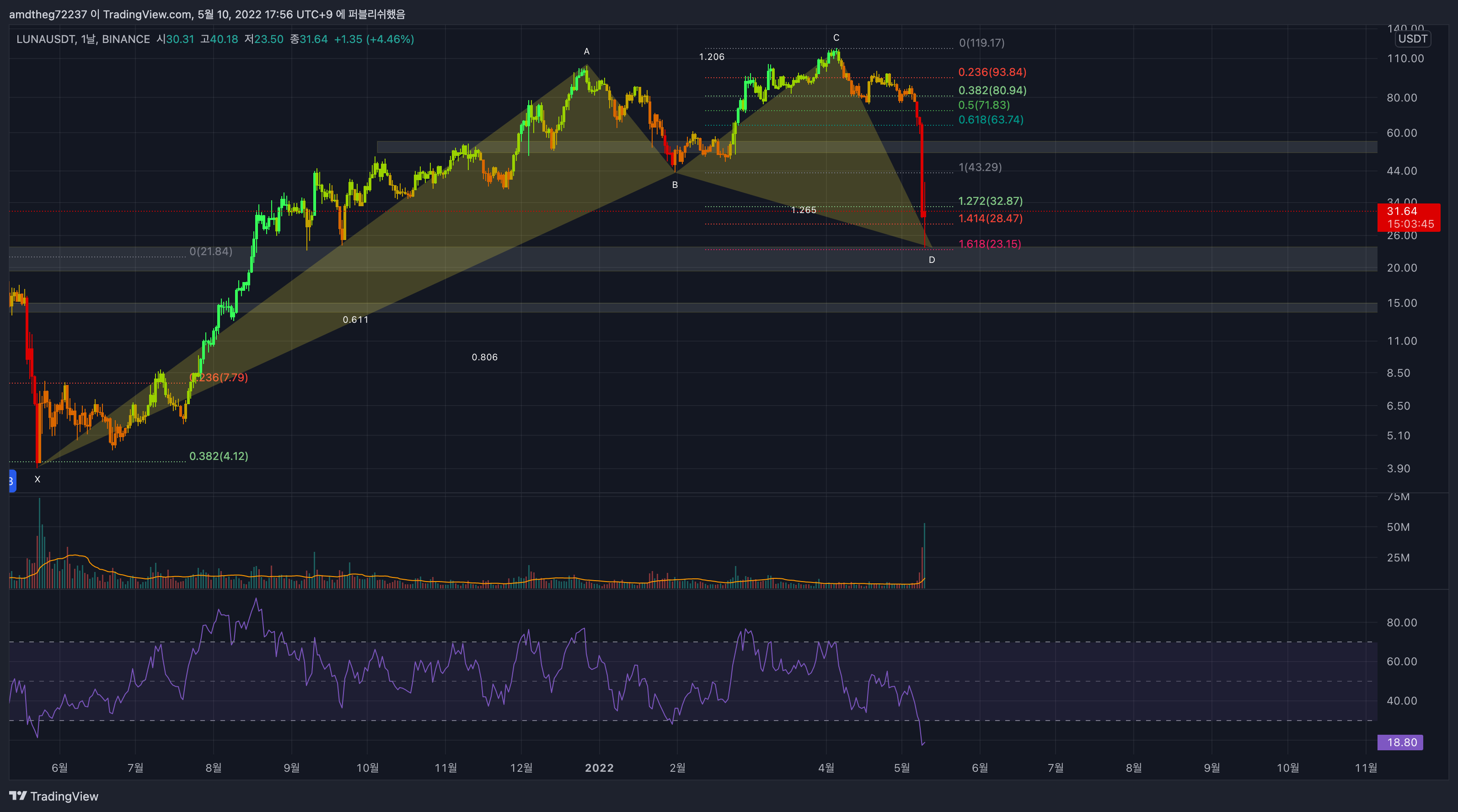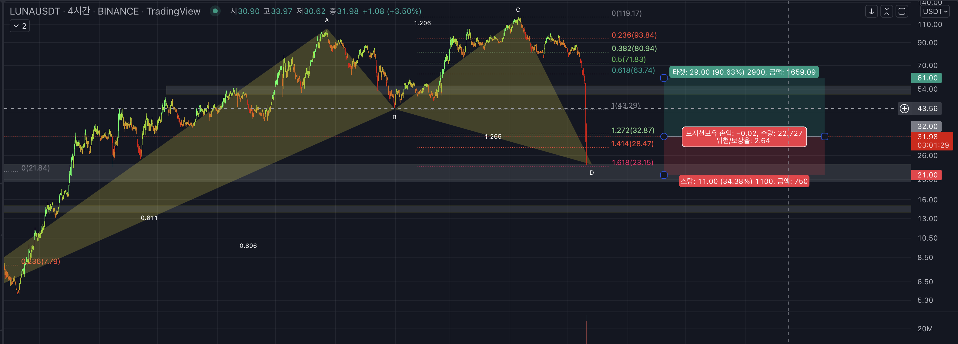 주봉에서 하모닉 패턴 사이퍼 형성된 점.