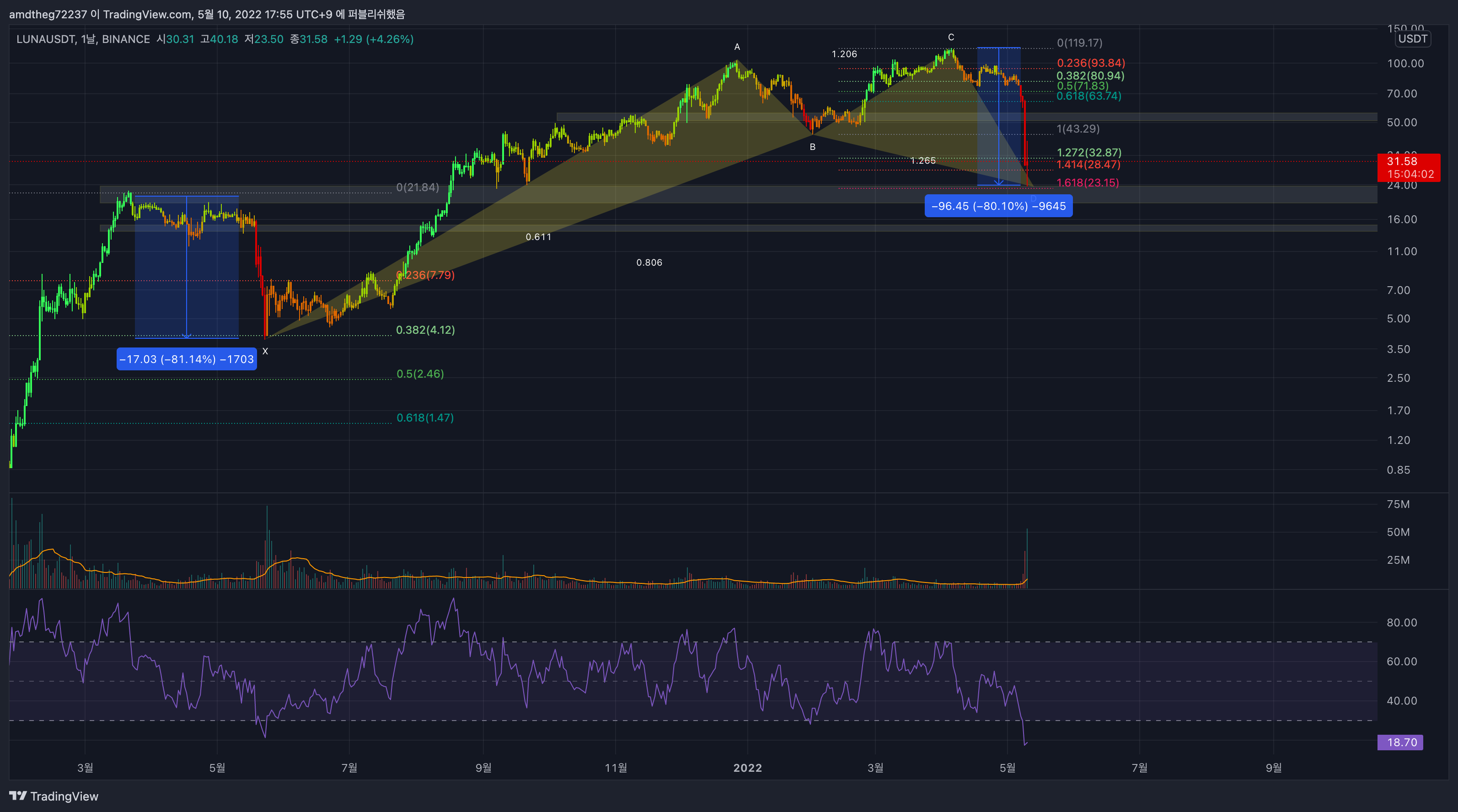 마지막 run 하락의 1.618 지점이라는 점.