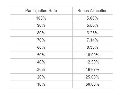 비록 참가 비율의 전체 스펙트럼에 대한 시나리오를 표에 작성하였지만 2단계의 참여율이 100% 근처에 갈 것이라고 예상하고 있는 것은 아닙니다. 아래에 예시를 활용하여 어떻게 테이블이 사용될 수 있는지 보여주고자 합니다.