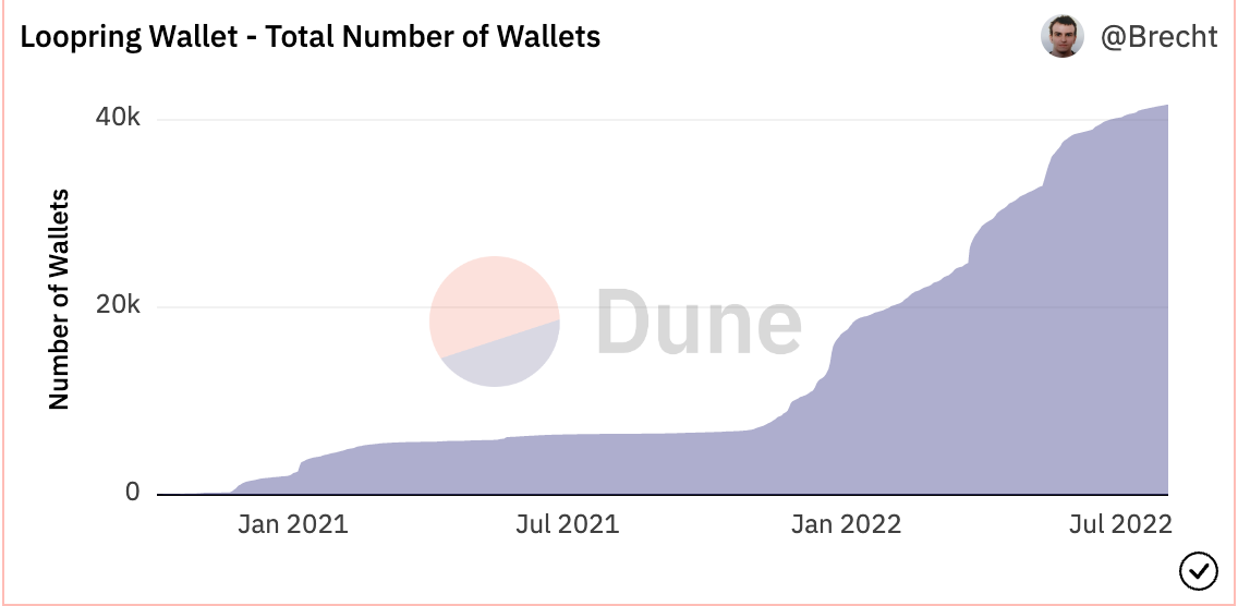 루프링 지갑수는 현재 41000개로 폴리곤 지갑수 대비 1 / 10 규모