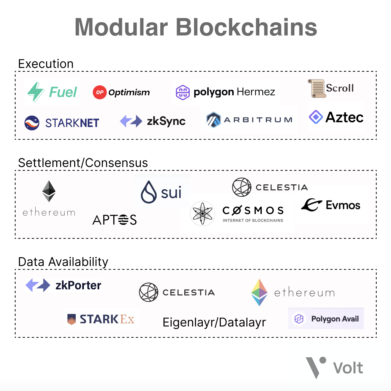 블록체인 트릴레마를 해결하는 유일한 방법은 모듈러 블록체인(Modular Blockchain)을 통한 실행 레이어(Execution Layer), 합의 레이어(Consensus Layer), 데이터 가용성 레이어(Data Availability Layer)의 분업화이며 이것이 이더리움 2가 그리고 있는 미래이기도 함