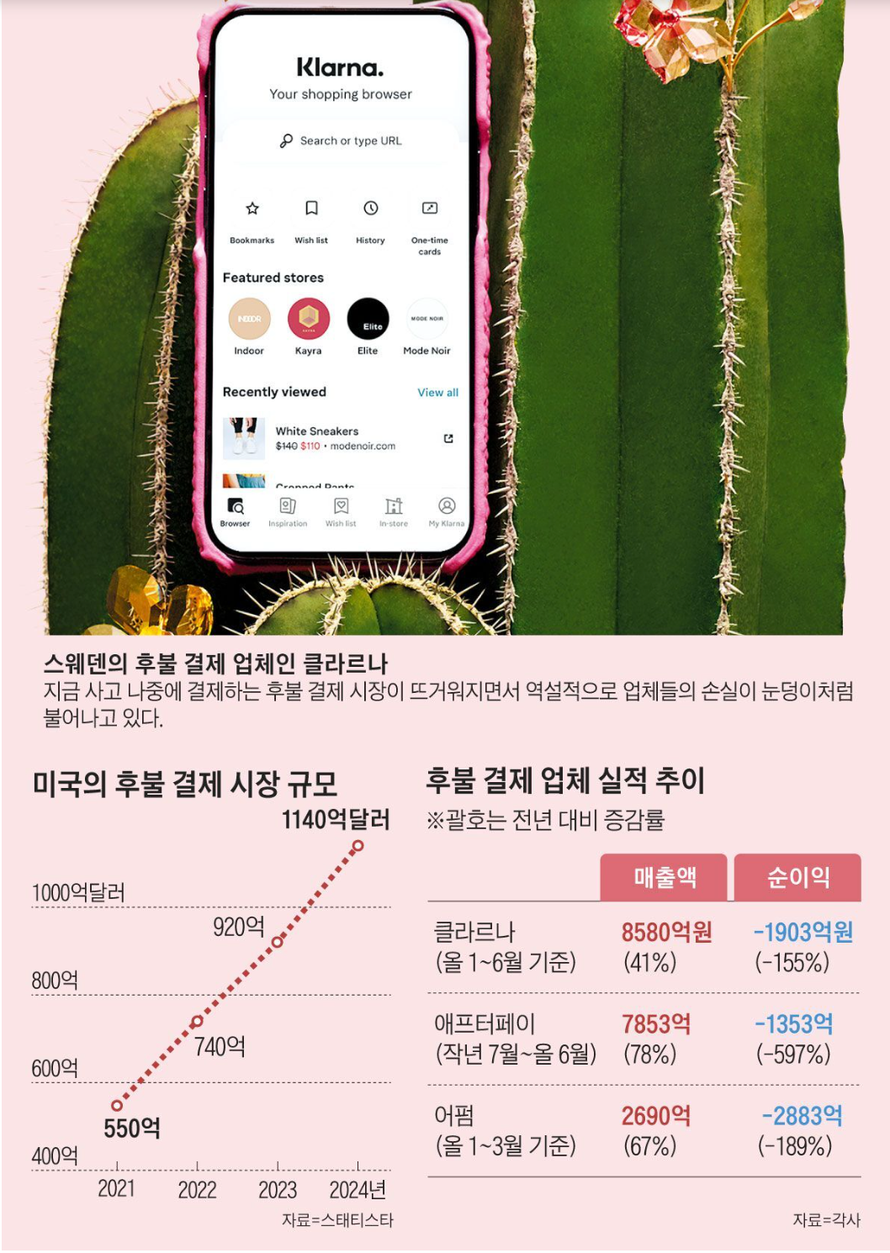 | Klarna | 스웨덴 | 소액결제 4회 분할 (Pay in 4)