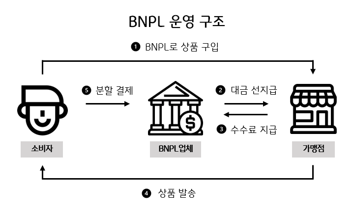 - 신용 점수가 부족하거나 없어 신용카드를 발급받지 못했거나 계좌 잔고가 없는 경우에도 BNPL을 이용해 물건을 구매할 수 있음