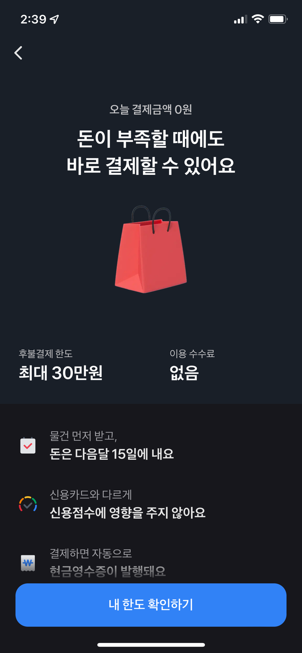- BNPL은 카드를 발급받는 과정이 없음. 앱을 다운로드해 본인 인증 후, 이메일, 핸드폰 번호만 입력하면 됨. 즉, 카드 발급 절차, 신용 심사 과정이 없음
