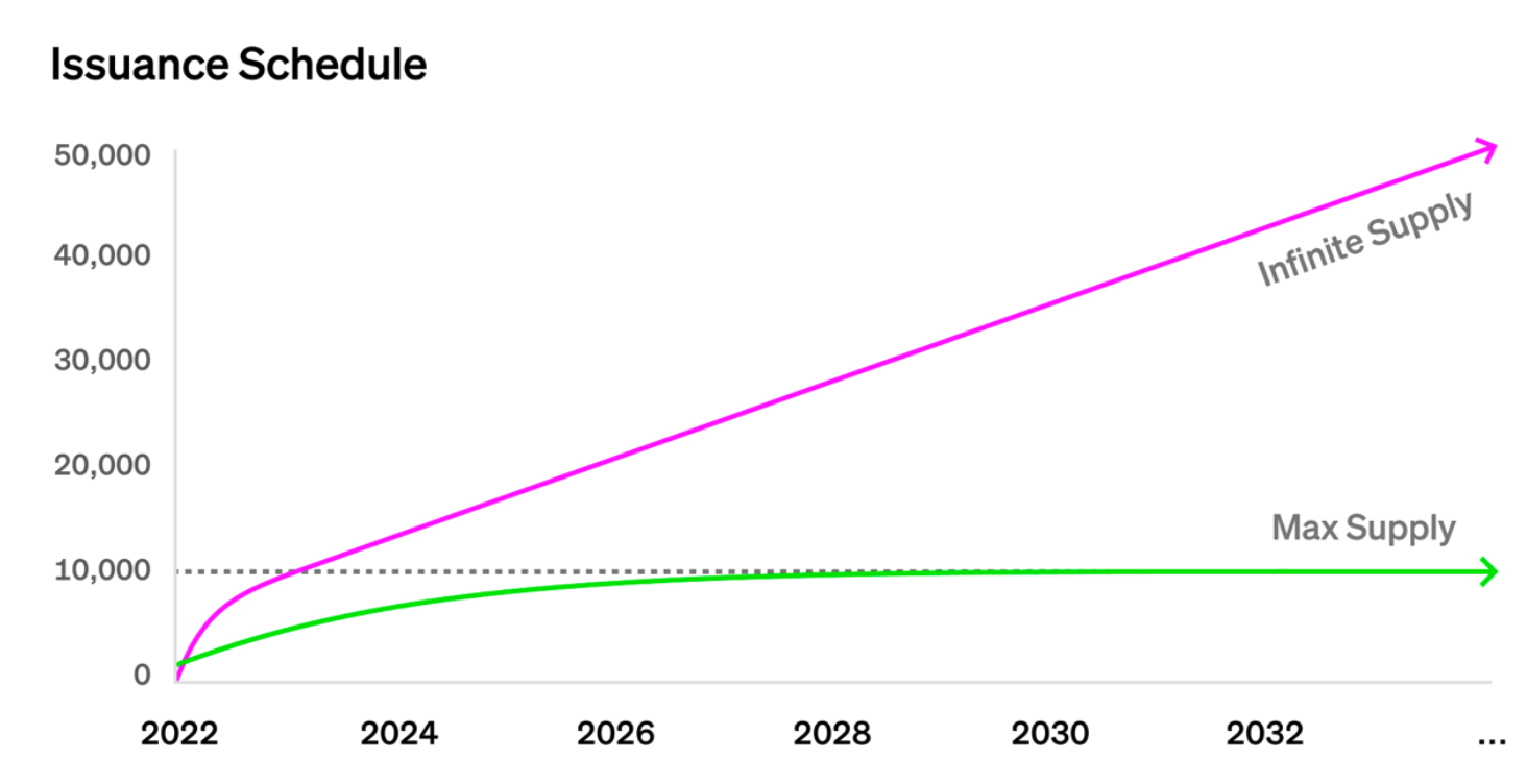 NFT 발행 스케줄을 선형적으로 짤 수도 있지만, 목적에 따라 다양한 방식의 공급 커브를 짤 수 있습니다.