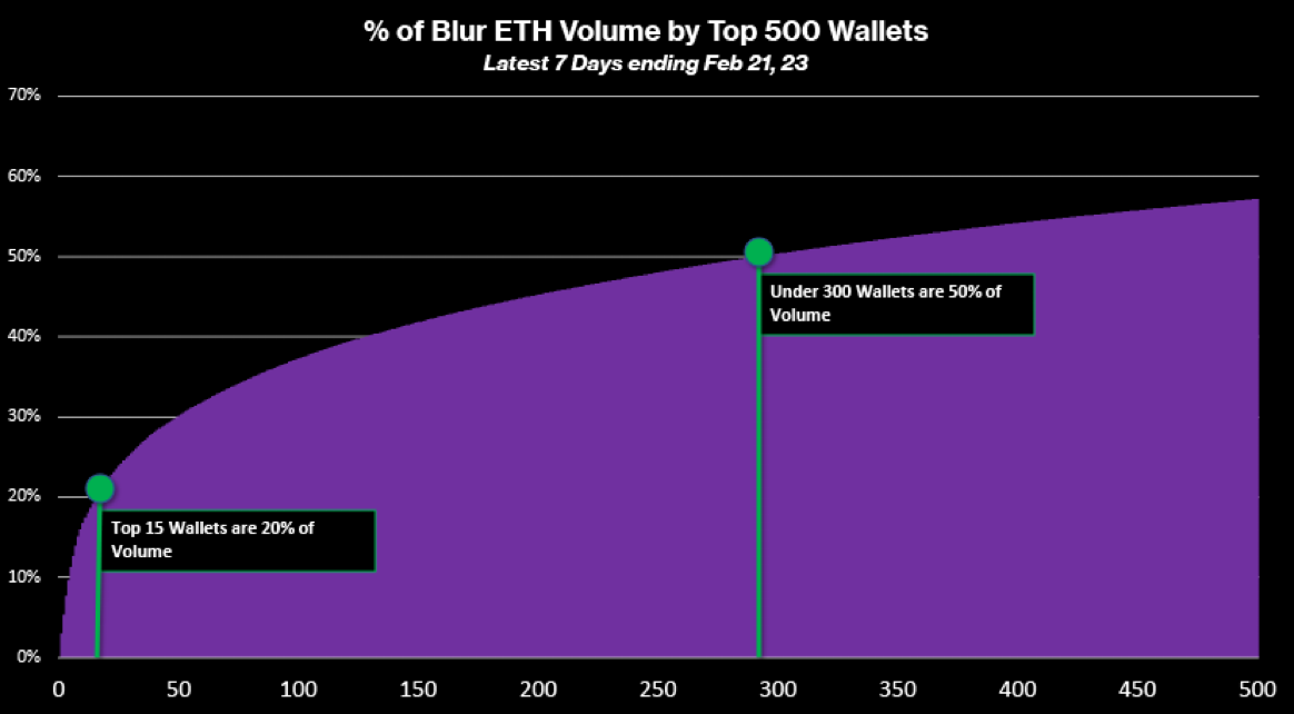 Blur는 300개의 지갑이 거래량의 절반을 차지하는 토큰 에어드랍을 위한 리얼 크립토 degen들의 카지노판이다.